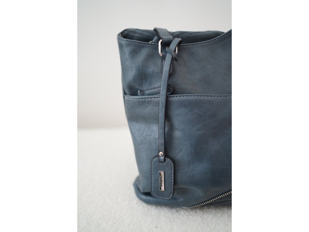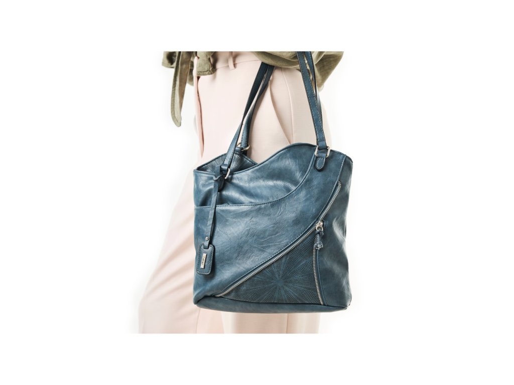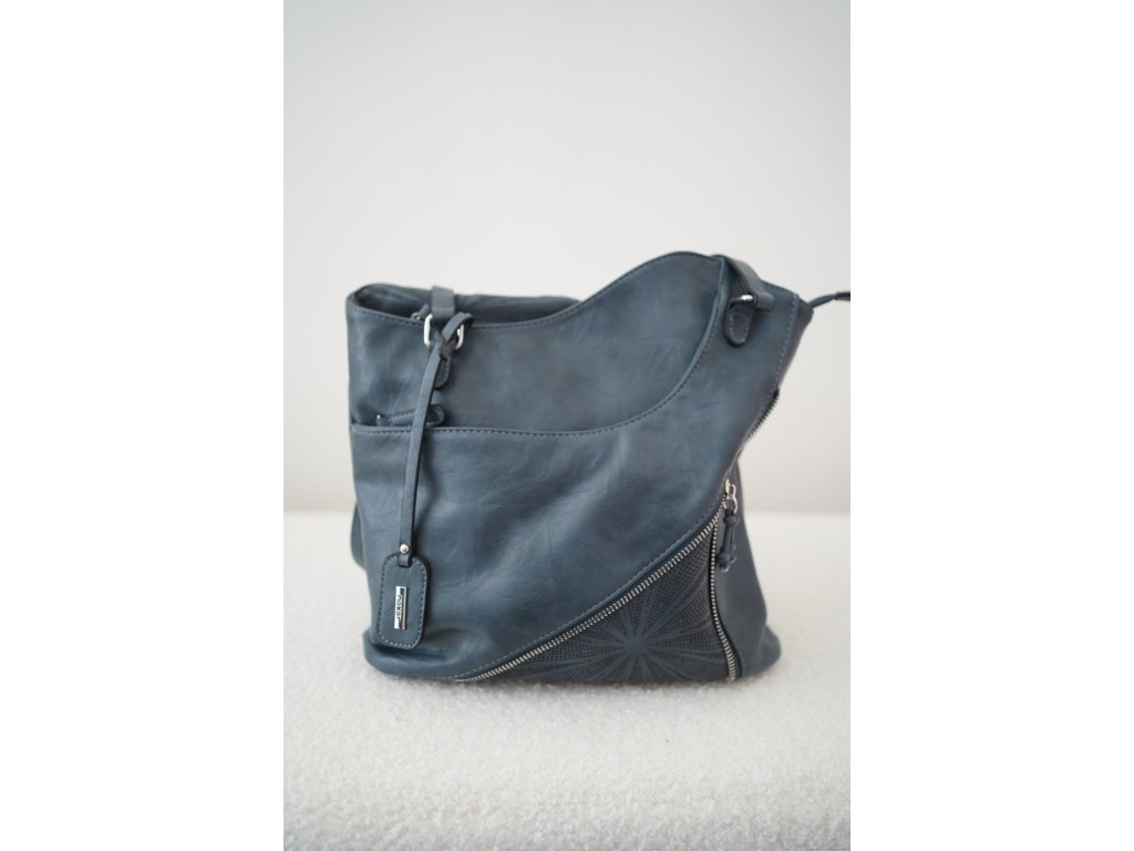 Kabelka je vyrobena z kvalitní syntetické kůže s jemným matným povrchem a decentním dekorem v přední části. Má několik praktických kapes – hlavní prostor je rozdělen na dvě části, nechybí ani vnitřní kapsa na zip a kapsa na drobnosti. Na zadní straně najdete další kapsu na zip pro bezpečné uložení mobilu nebo klíčů.
